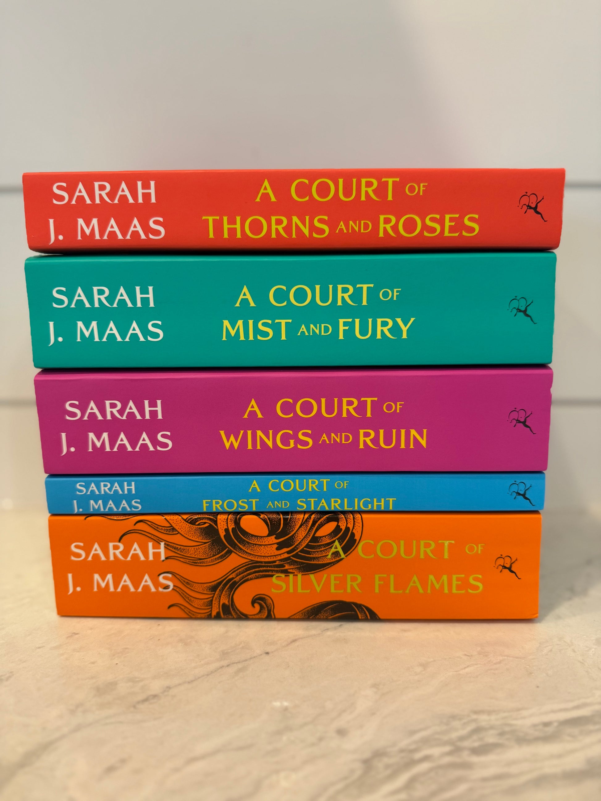 This stunning set of the #1 bestselling series by Sarah J. Maas includes A Court of Thorns and Roses, A Court of Mist and Fury, A Court of Wings and Ruin, A Court of Frost and Starlight, and A Court of Silver Flames.